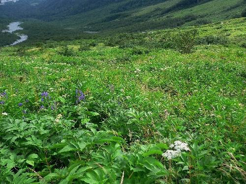 後はお花畑の中を岳沢小屋目指して歩くだけです。それにしても全く